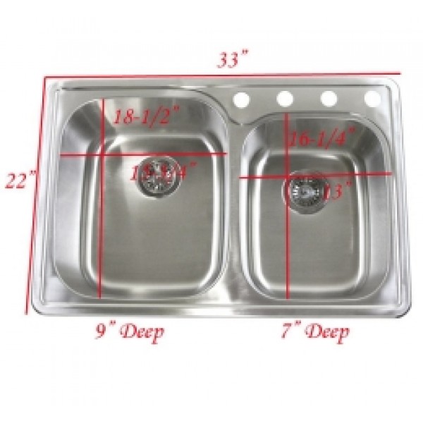 Full 18 gauge premium grade stainless steel kitchen sink.